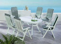 Marken-Auflagen aus dem Hause Best: Mit der grün/weißen Hochlehnerauflage werden Ihre Gartenstühle und Sessel gleich doppelt bequem. Die hochwertige Auflage besteht aus einem 6 cm starken Schaumstoffkern mit thermisch verfestigter Vliesumhüllung, ummantelt von einem Bezug aus strapazierfähiger, 100 % Baumwolle.