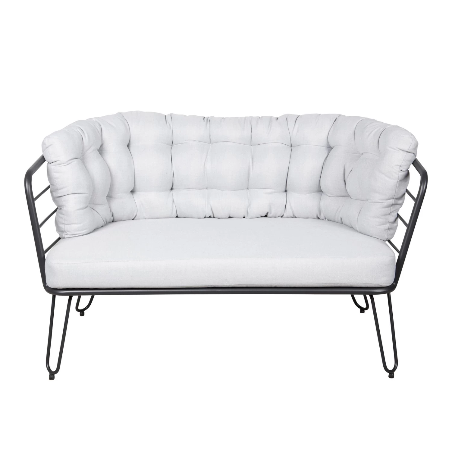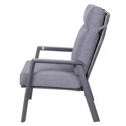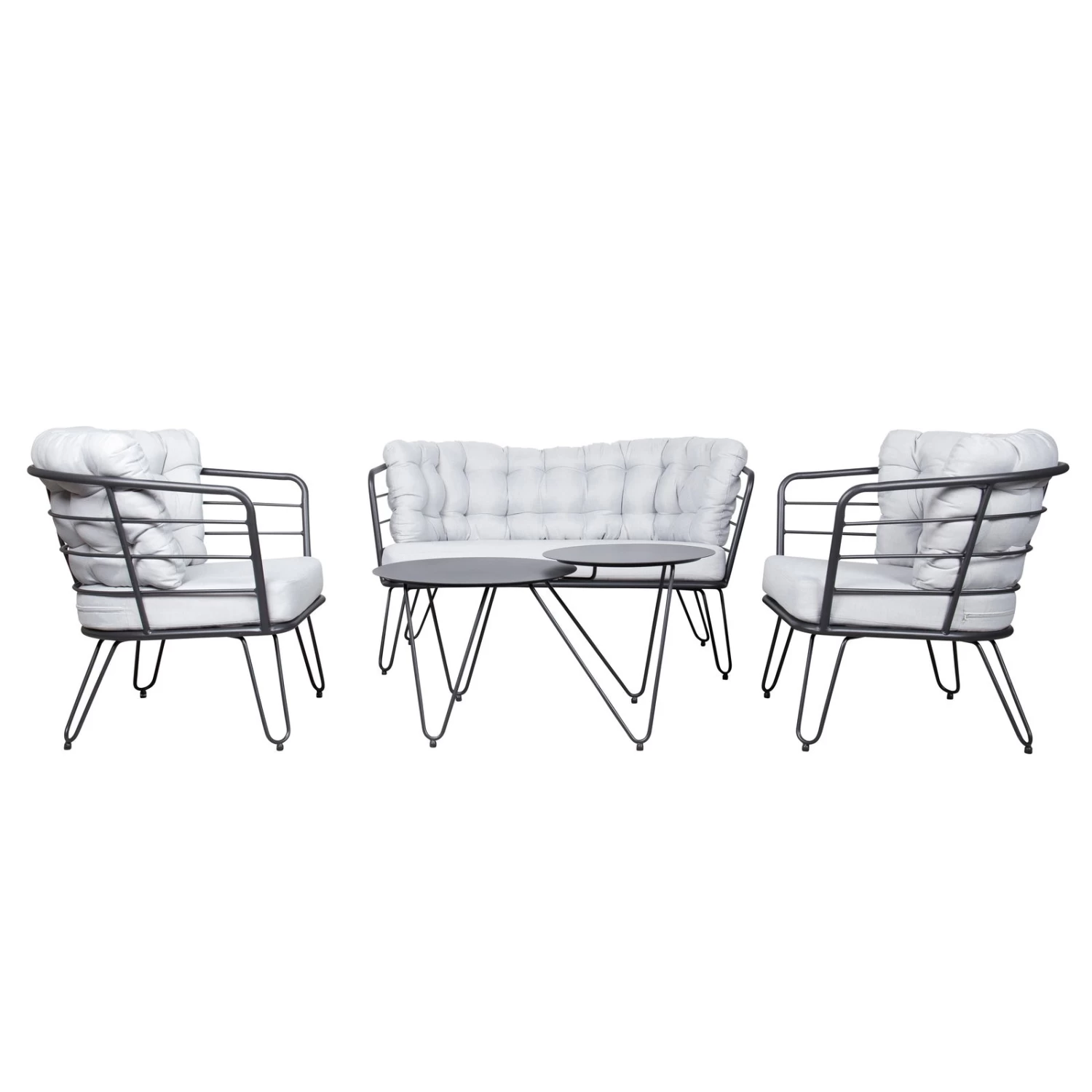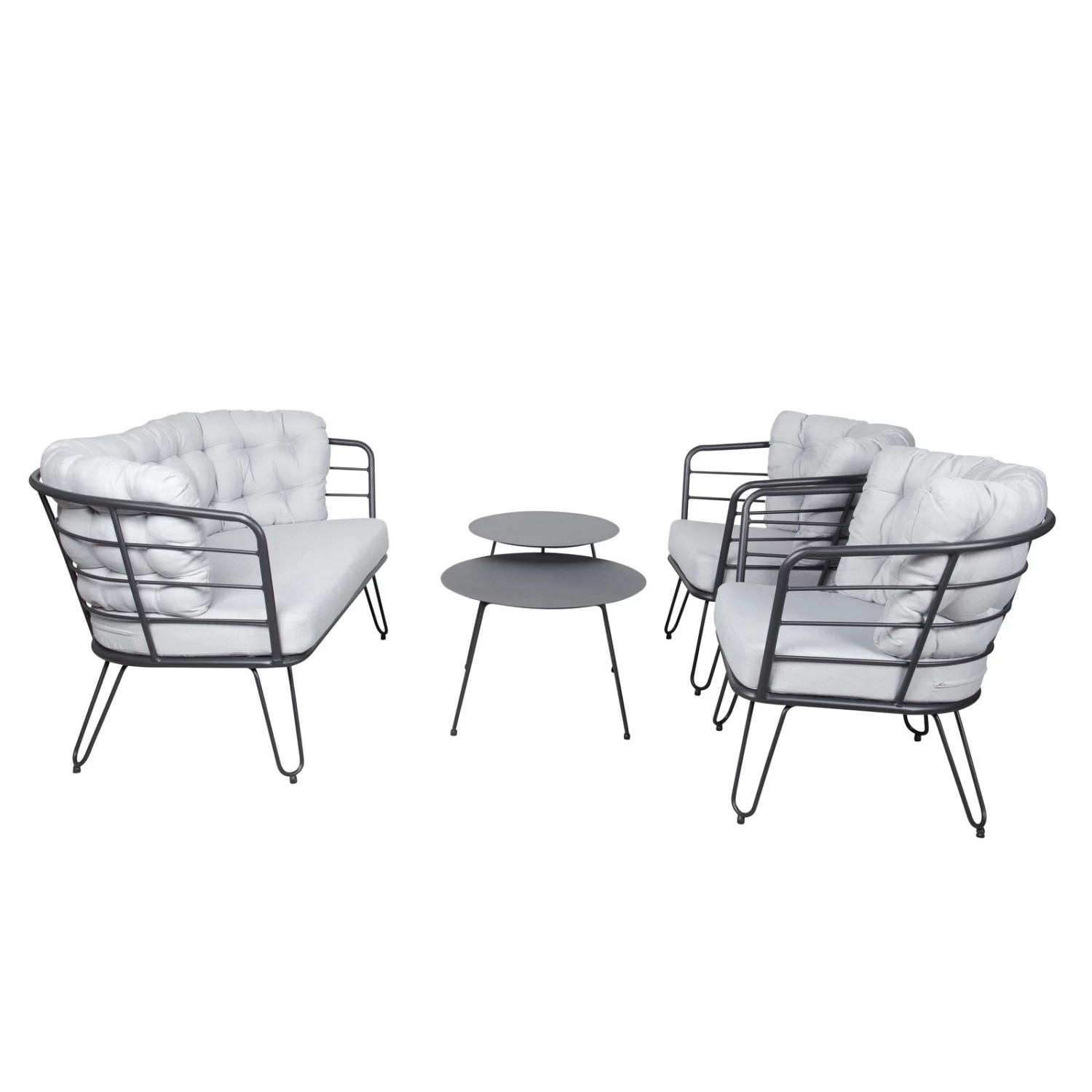 Die Alu-Loungegruppe ‚Bella‘ hilft Ihnen, Ihre Sitz- und Dining-Landschaft im Outdoorbereich mit maximalem Komfort zu gestalten. Diese Loungegruppe ĂŒberzeugt durch stabiles und leichtes Gestell aus Aluminium in der Farbe Schwarz und weich gepolsterte Auflagen in Grau, die im Lieferumfang bereits inklusive sind.