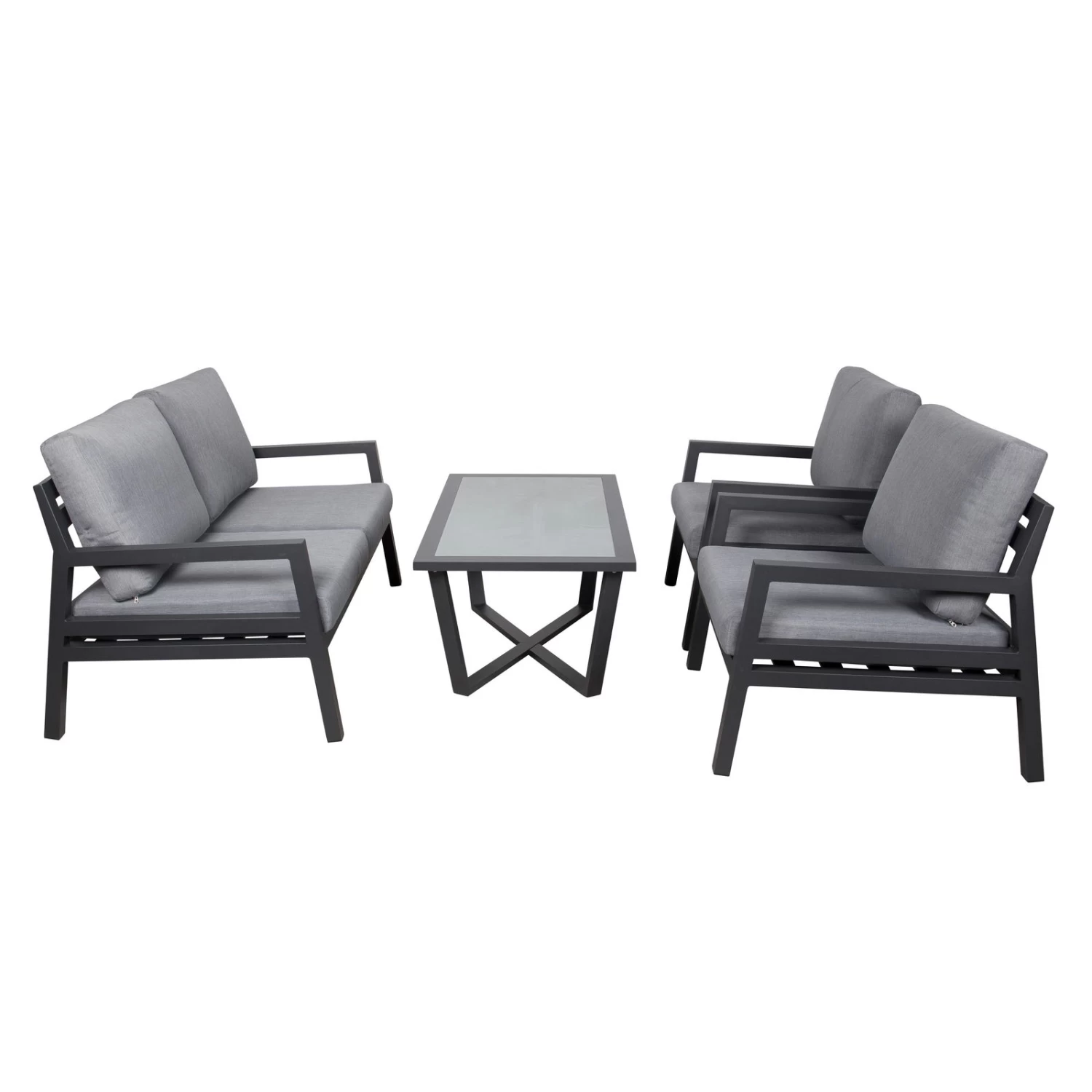Die Alu-Loungegruppe ‚Piazza‘ eignet sich ideal dazu, Ihre Dining- und Sitzlandschaft outdoor aufzuwerten. Dieses geschmackvoll gestaltete und pflegeleichte Set mit einem Gestell aus Leichtmetall Aluminium erhalten Sie inklusive weich gepolsterter Auflagen. Ein besonderes Highlight stellt der Tisch mit Glasplatte dar.