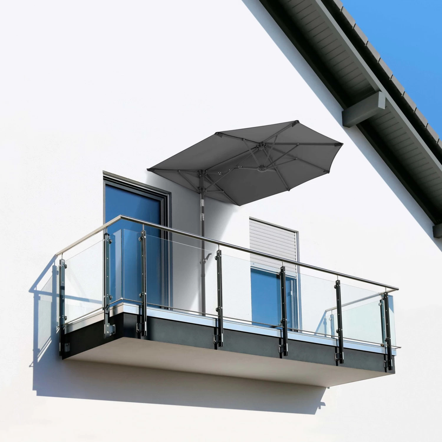 Der Balkonschirm Salerno Mezza sorgt für ein schattiges Plätzchen an einem glühend heißen Sommertag. Spannen Sie den Schirm auf und genießen Sie die Abkühlung. Um den Balkonschirm an den Sonnenstand anzupassen, nutzen Sie den integrierten Knickmechanismus. Der Schirm ist mit Hilfe einer Kurbel zu öffen. Die Bespannung ist abnehmbar. Für die Reinigung empfehlen wir die Handwäsche.