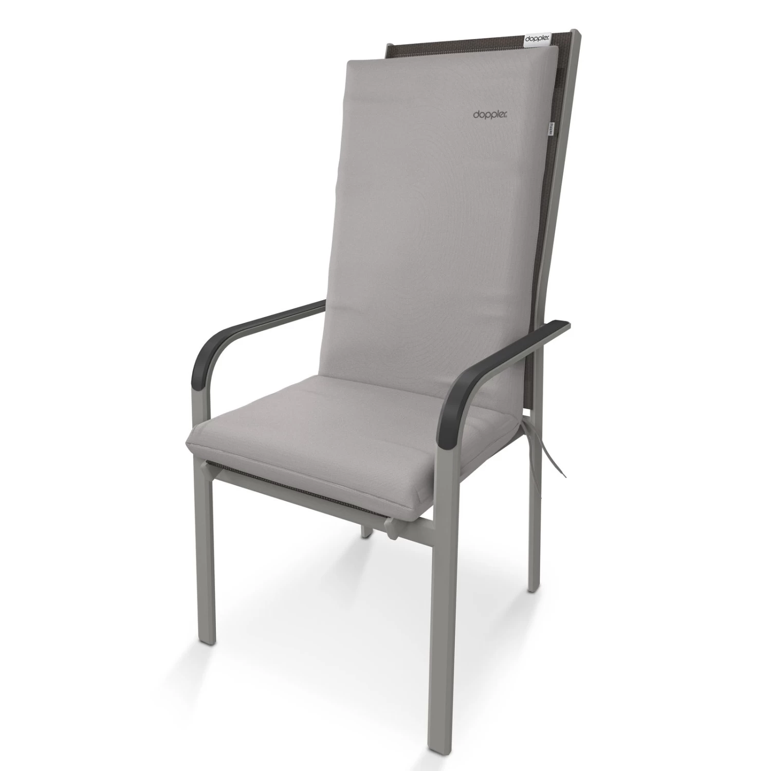 Mit dieser hellgrauen Polsterauflage verwandeln Sie Ihren Hochlehnerstuhl in eine Komfortoase. Die Hochlehnerauflage aus der Serie ‚Nature‘ von Doppler überzeugt mit abnehmbarem Bezug aus umweltfreundlich recycelten PET-Flaschen und lässt sich mithilfe von Rückengummi und Bindebändern sicher am Möbelstück fixieren.
