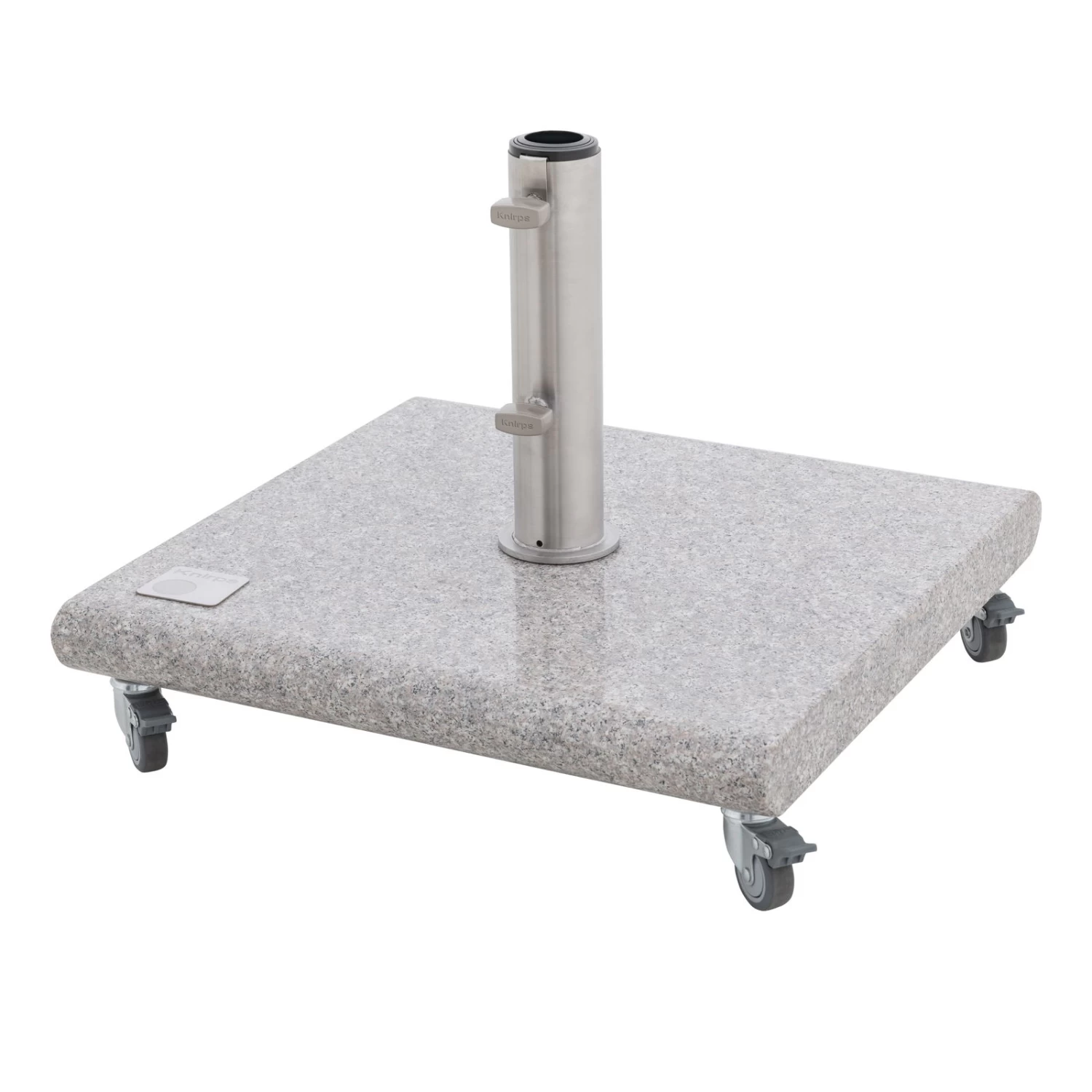 Mit diesem rund 40 Kilogramm schweren Sockel aus Naturmaterial Granit bleibt Ihr Sonnenschirm von Knirps standhaft. Denken Sie jedoch daran, bei stĂŒrmischem Wind den Sonnenschirm unbedingt rechtzeitig zu schlieĂen. Ihr Vorteil: Der Granitsockel ist mit Rollen ausgestattet, um Ihre Beschattung mit maximaler FlexibilitĂ€t zu gestalten.
