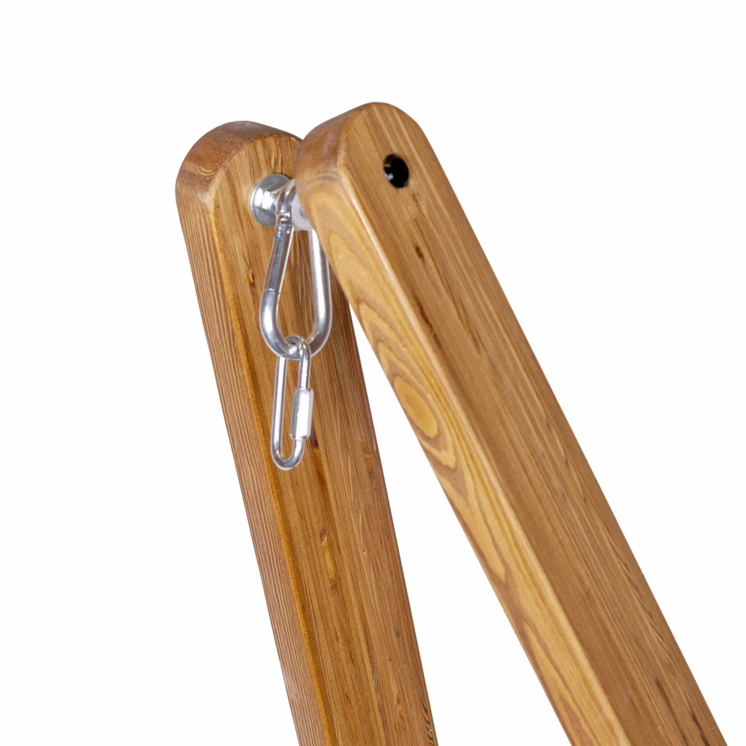 Das Hängesesselgestell Calma Nature von La Siesta ist aus witterungsbeständiger FSC™-zertifizierter Lärche gefertigt und hält sogar hohen Belastungen stand. Dieses Gestell überzeugt mit eleganter Linienführung und der patentierten Befestigungen SmartHook & MultiSpot. Das Gestell ist höhenverstellbar und mit den Hängesesseln aus der Linie Comfort kompatibel.