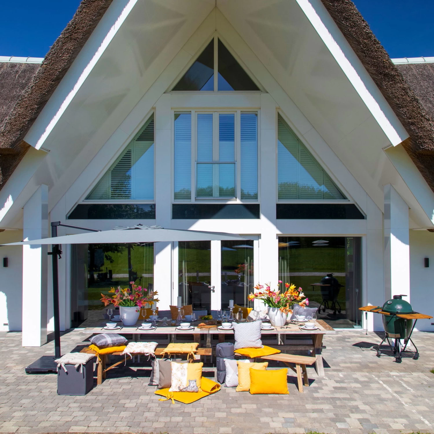 Der Pendelschirm ‚St. Tropez‘ von Madison in edlem Grau lĂ€sst auf Ihrer Terrasse oder Loggia eine luxuriöse AtmosphĂ€re entstehen und spendet wohligen Schatten. Den Ampelschirm können Sie nicht nur um 360 Grad schwenken, sondern auch kippen und dadurch optimal an den Sonnenstand anpassen. Der Polyesterbezug ist wasserabweisend und pflegeleicht.