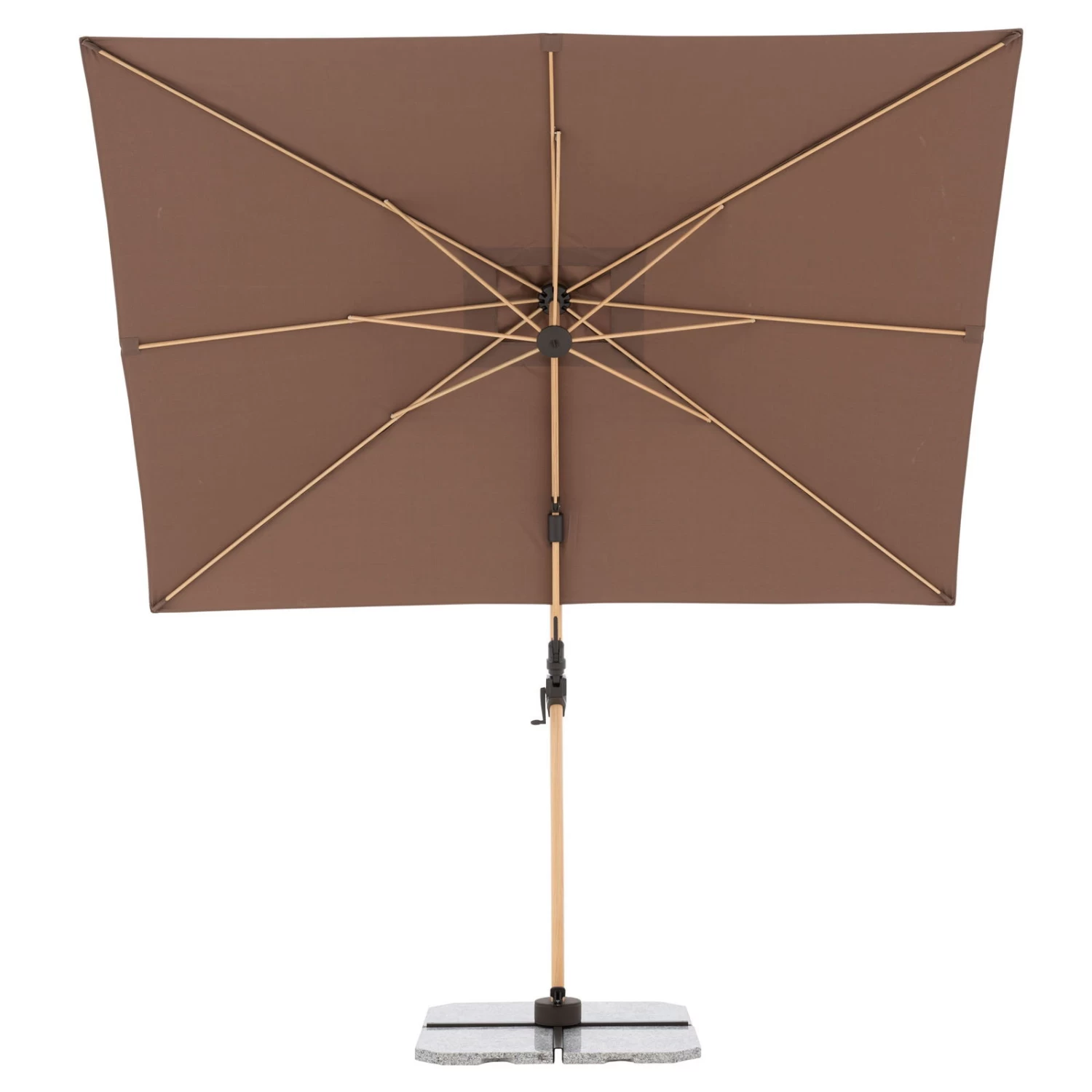Mit dem Pendelschirm ‚Alu-Wood Ultra AX‘ in ansprechender Holzoptik lassen Sie inmitten der glĂŒhenden Hitze eine wohltuende Schattenoase entstehen. Ein paar Handgriffe genĂŒgen, um diesen Ampelschirm zu kippen und zu neigen. FĂŒr ein Plus an FlexibilitĂ€t ist das Modell mit einem FuĂtaster um 360 Grad drehbar.