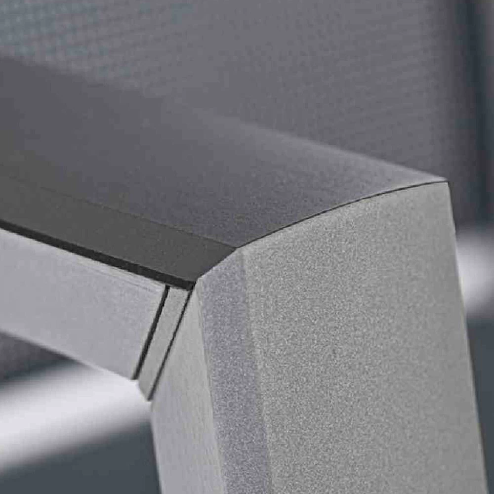 Der Stapelsessel Trento überzeugt neben dem graphitfarbenen, formschönen Aluminiumgestell und der hochwertigen Textilux®-Bespannung mit Wetterfestigkeit und UV-Stabilität. Zudem sind die Sessel platzsparend stapelbar und können somit einfach zur Seite gestellt und bei Bedarf rasch hervorgeholt werden.